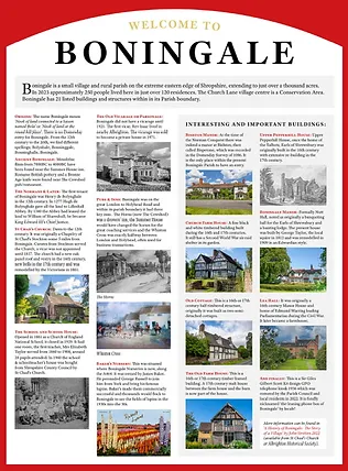 In 2021 the Parish Council together with a group of interested residents set about completely renovating the very dilapidated kiosk. It was a labour of love that took weeks of hard work by the volunteers generously funded by many residents and Boningale Parish Council. However, by the end of the year the kiosk had been returned to its former glory and ready to be used as an information point.